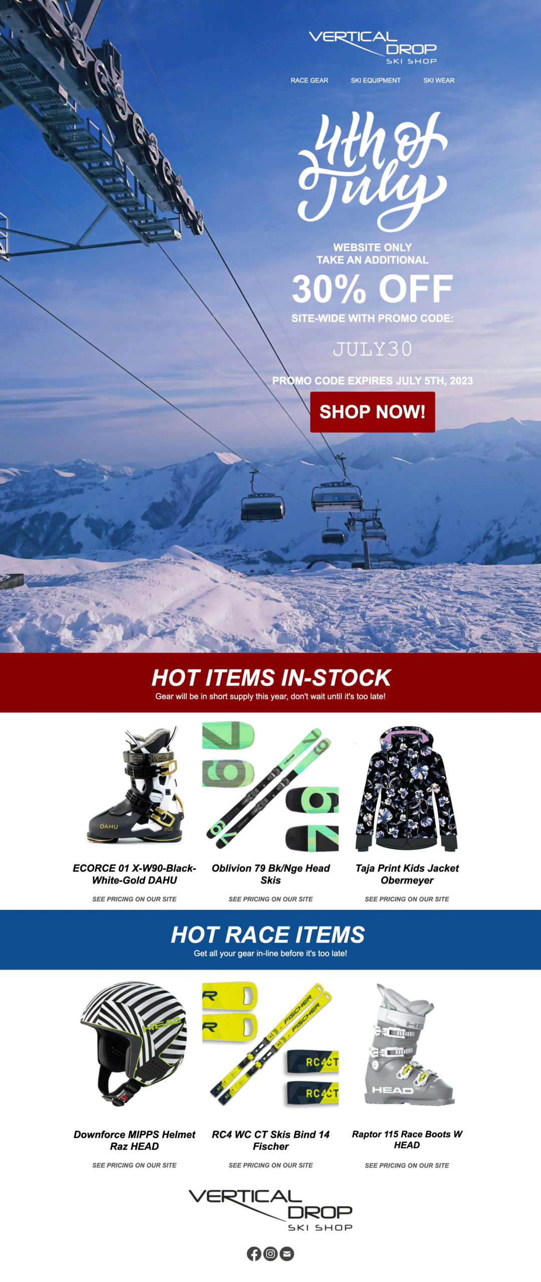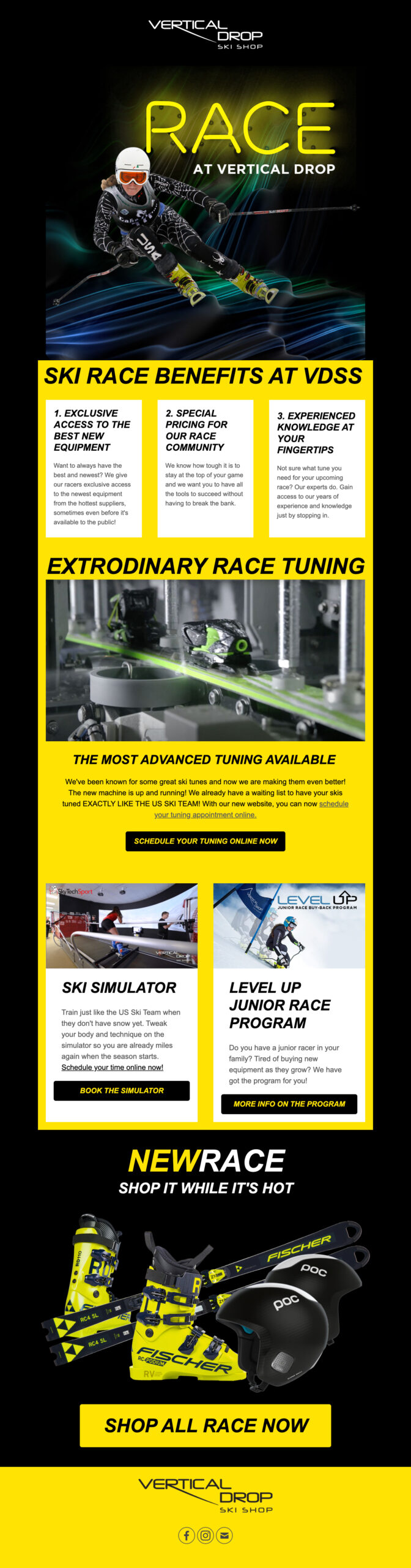 For over 15 years, I’ve had the privilege of working closely with Bob Thomas and now Vertical Drop Ski Shop, a trusted local hub for skiers and racers. What began as a handful of seasonal print ads has evolved into a full-spectrum creative partnership that spans across web design, print collateral, email campaigns, social content, and video production.